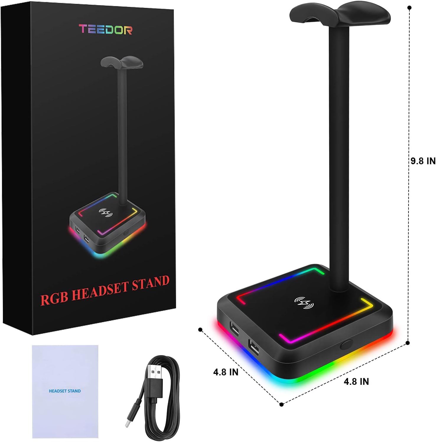 TEEDOR RGB Gaming Headset Stand with Wireless Charger