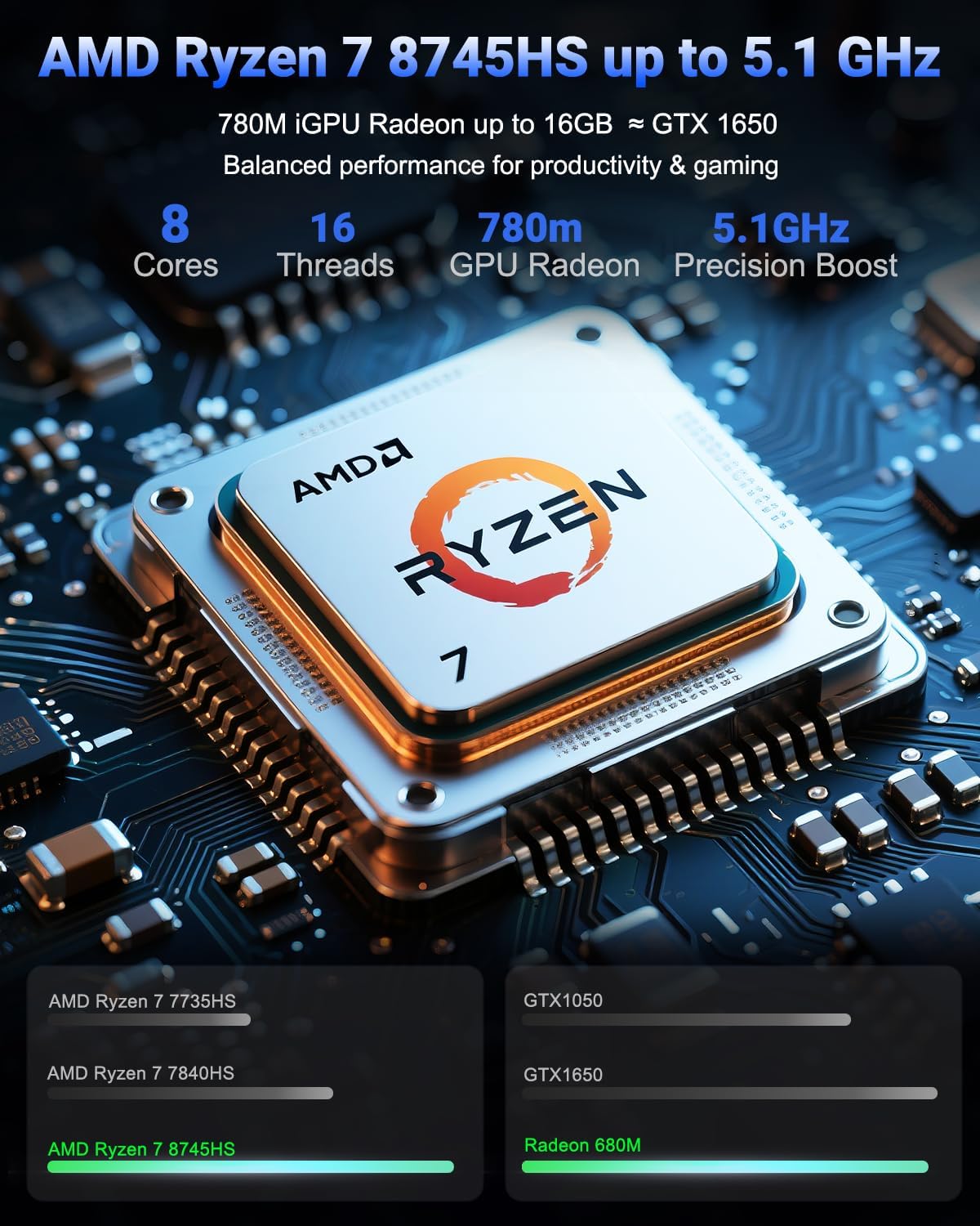 Equipped with the cutting-edge AMD Ryzen 7 8745HS processor, featuring 8 cores and 16 threads, experience lightning-fast speeds of up to 4.9GHz. Whether you’re gaming, creating content, or tackling professional tasks, the NIMO Laptop delivers desktop-class performance in a sleek, portable design.