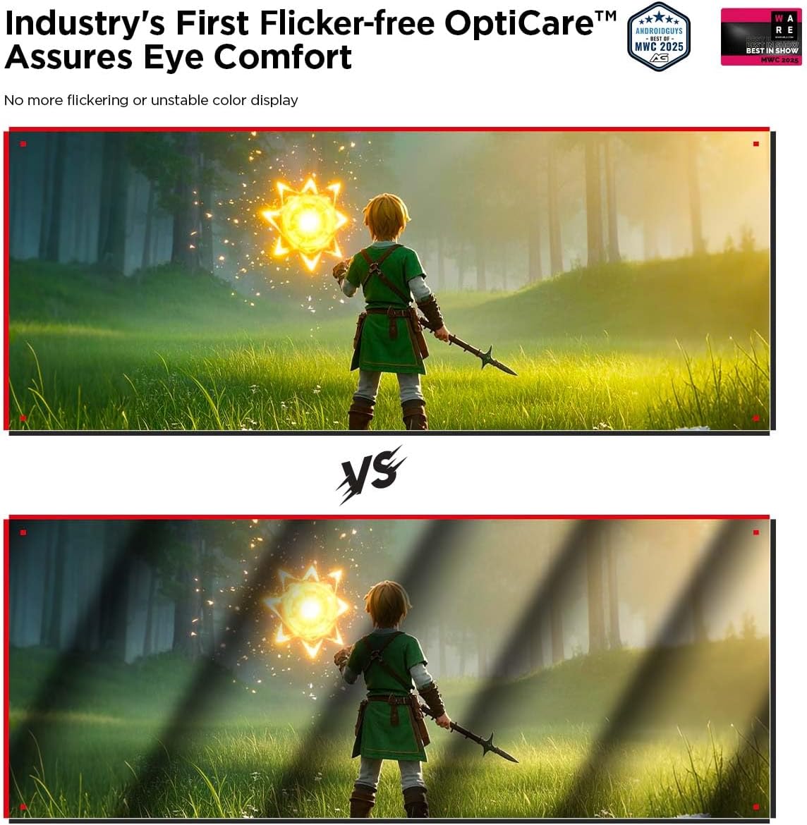Enhanced Eye Comfort with OptiCare Technology: Designed for prolonged use, the RayNeo Air 3s come with 3840 Hz hybrid dimming technology, certified by TÜV SÜD for low blue light and flicker-free performance. With 20 adjustable brightness levels, tailor your viewing experience to fit any environment.
