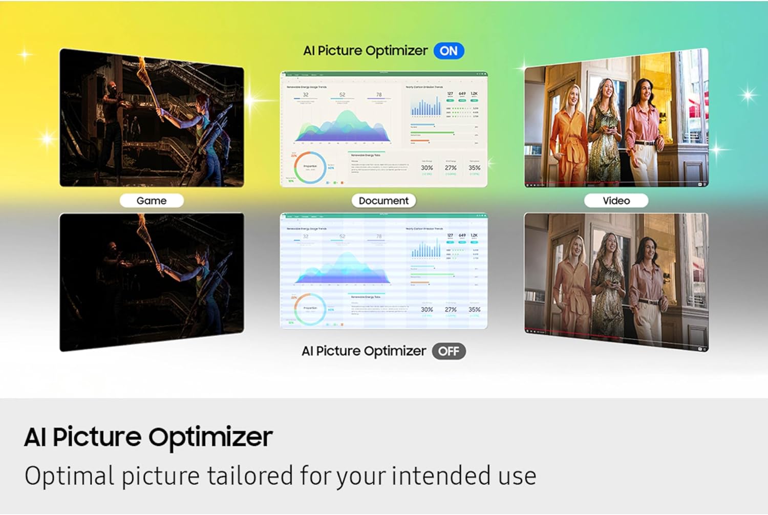 Experience stunning picture quality like never before. The AI Picture Optimizer customizes visuals based on your activity—be it working on important documents or immersing yourself in high-octane gaming—with deep contrast and vibrant colors that enhance every moment.
