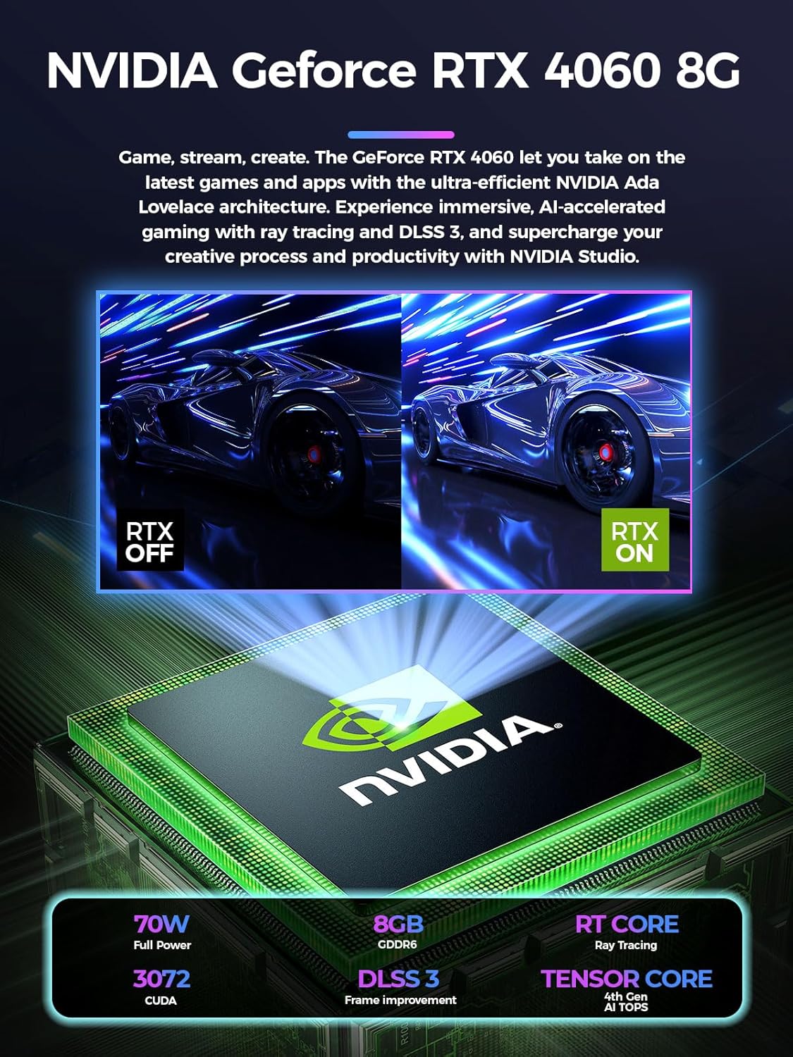 Equipped with the GeForce RTX 4060 GPU, you’ll experience stunning visuals with real-time ray tracing and DLSS 3.0. This advanced graphics card not only enhances your gaming experience with high frame rates but also meets the performance needs of content creators looking for reliability in complex tasks.