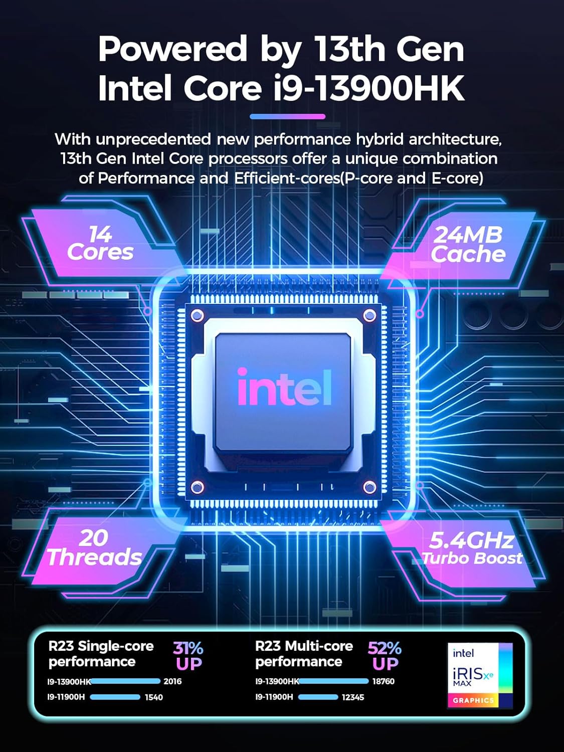At the heart of the T1-Pro is the 13th Gen Intel Core i9-13900HK processor, featuring 14 cores and up to 5.4GHz clock speeds. Whether you’re delving into intricate game worlds or tackling demanding applications, this CPU ensures seamless multitasking and lightning-fast responsiveness.