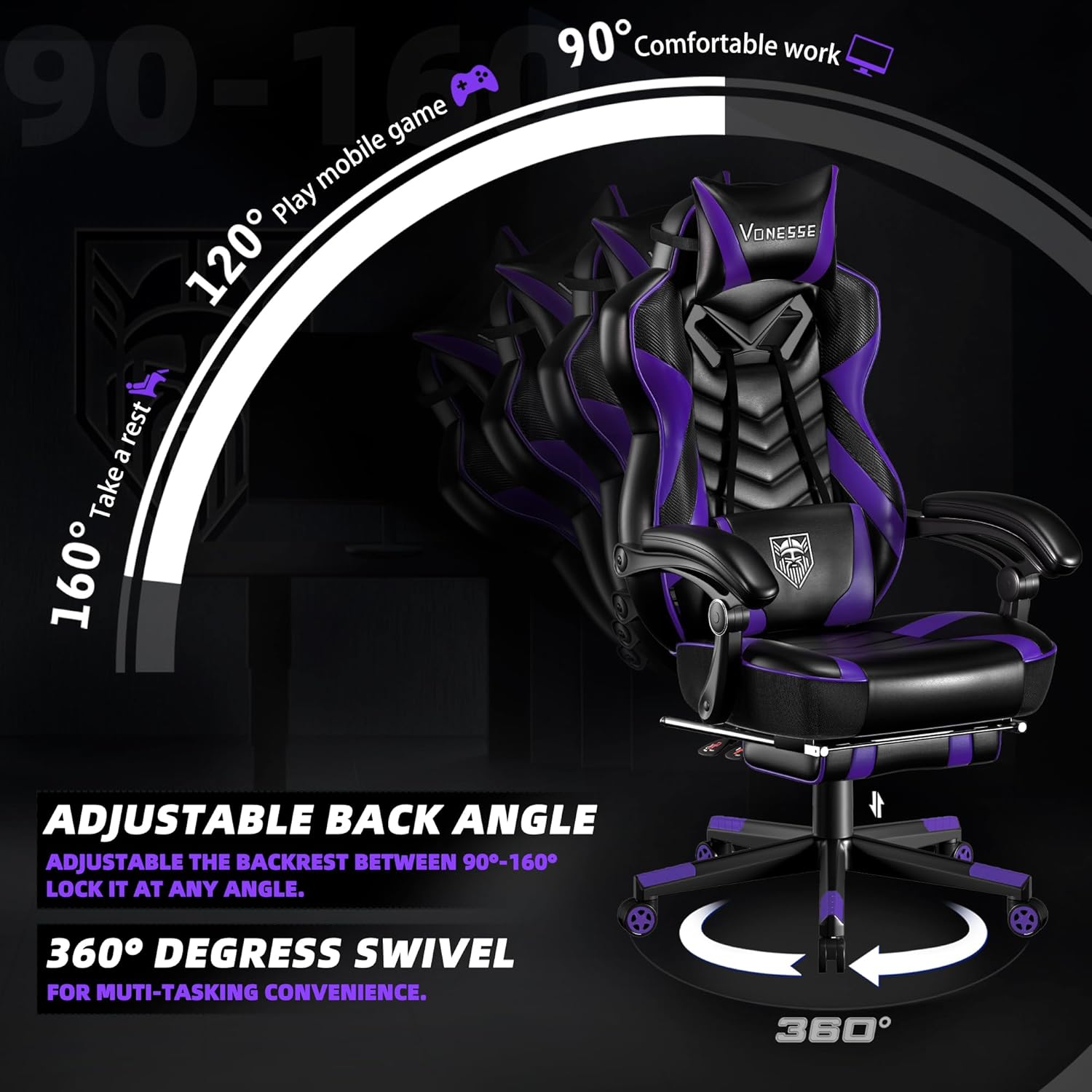 Full Customization: With a versatile reclining mechanism, you can position the backrest anywhere between 90° and 160°. Whether you’re sitting up for intense gameplay or leaning back to relax, find your perfect angle effortlessly.